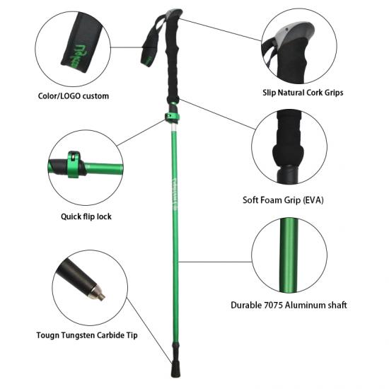 feistel engros aluminiumslegering EVA korkhåndtak ut hurtiglås sammenleggbare trekkingstaver