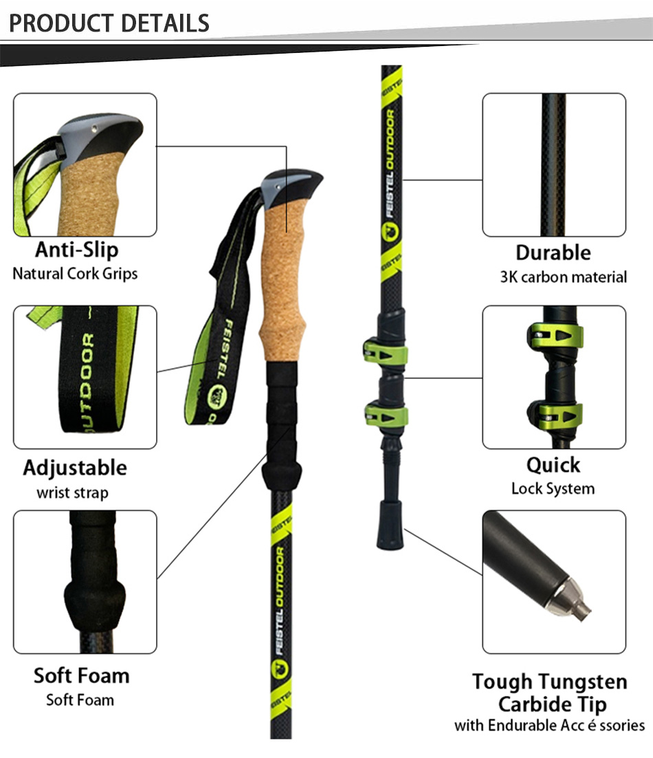 OEM fabrikkpris antisjokk uttrekkbar turstav, turstaver i karbonfiber, turstav
