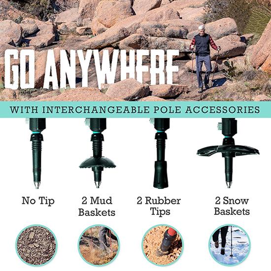 [Kompakt og reisevennlig] Trekkingstaver kan enkelt oppbevares i bagasje, ryggsekker og saccosekker. Denne turstaven kommer også med en gummituppbeskytter som er lett å lagre, stangkobling og gjørmekurv.