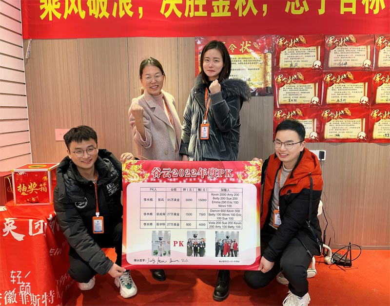på møtet, lanserte daglig leder for anhui feistel utendørs produkt co., ltd. en aktivitet om årlige ytelsesspill. vennene satset med daglig leder i henhold til deres egne mål, og de kunne få tilsvarende belønninger henholdsvis. alle ble med den ene etter den andre. i denne begivenheten, det var også folk som la til gambling. under hele møtet, alle ga råd etter hverandre, og til slutt ble statistikken utført av en ansatt i anhui feistel outdoor product co., ltd.