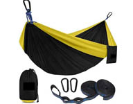 Når nylon tau vever en parabolsk vugge mellom trestammer, uttrykkes de ergonomiske prinsippene poetisk uttrykt her.