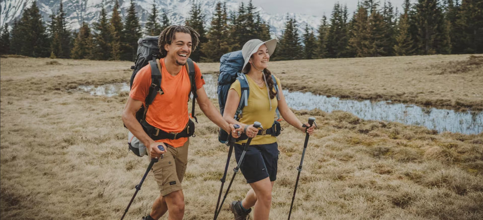 Bruk av to stolper øker stabiliteten ved å skape et firepunkts kontaktsystem med bakken. Dette reduserer belastningen på underkroppen, noe som gjør dem ideelle for bratte opp- og nedstigninger. Fra steinete stier til snødekte landskap, turstaver tilpasser seg sømløst. De spisse tuppene deres graver seg ned i løse overflater, mens valgfrie snøkurver forhindrer å synke ned i mykere grunner.