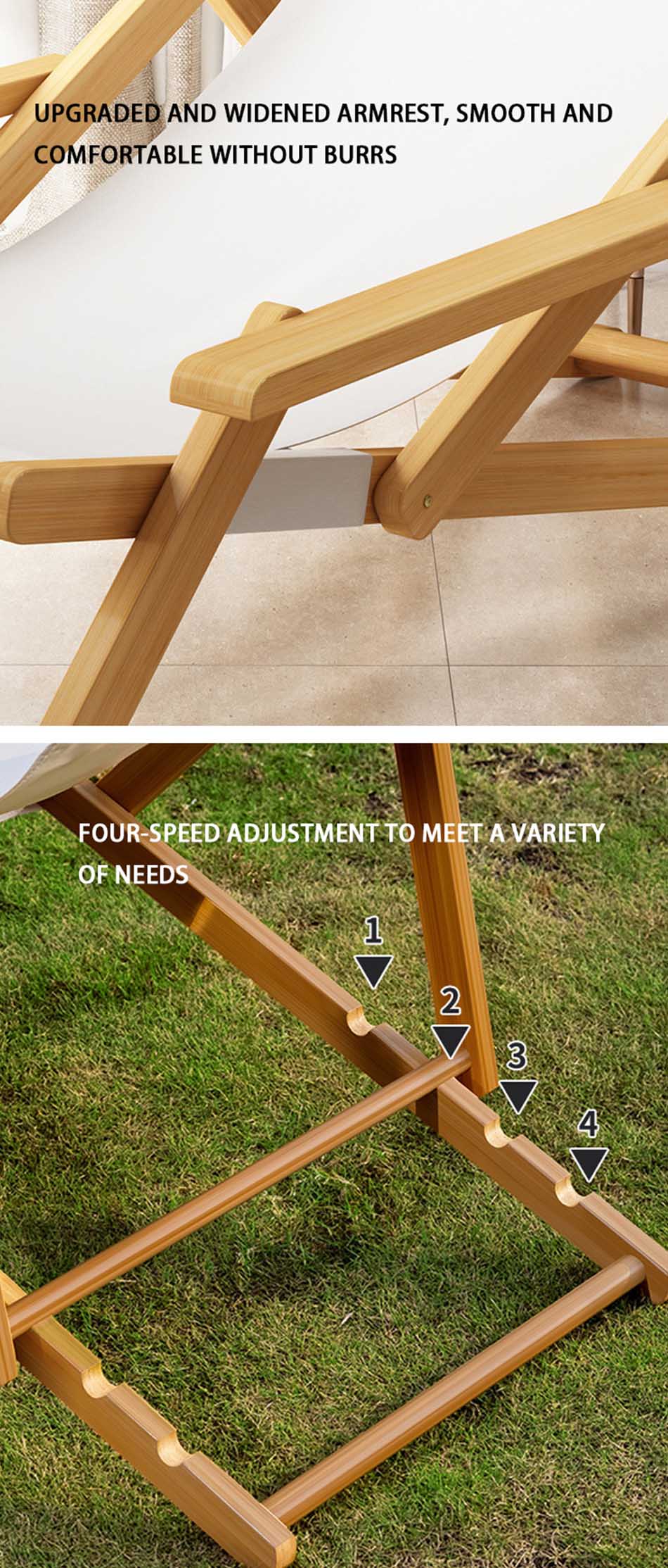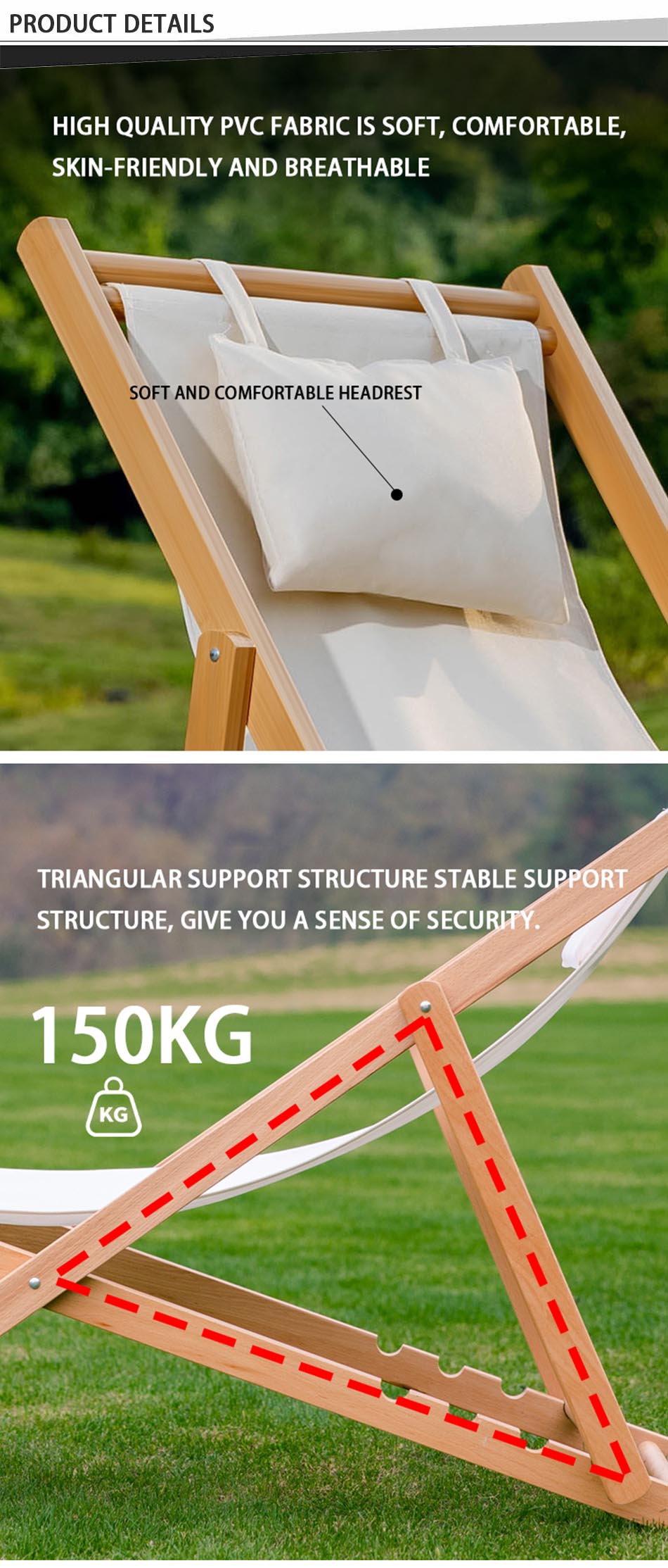 Produkt : Denne sammenleggbare lenestolen i tre for camping har en solid ramme, ergonomisk tilbakelent design og kompakt sammenleggbar struktur – perfekt for avslapning på stranden, campingplassen eller i hagen.