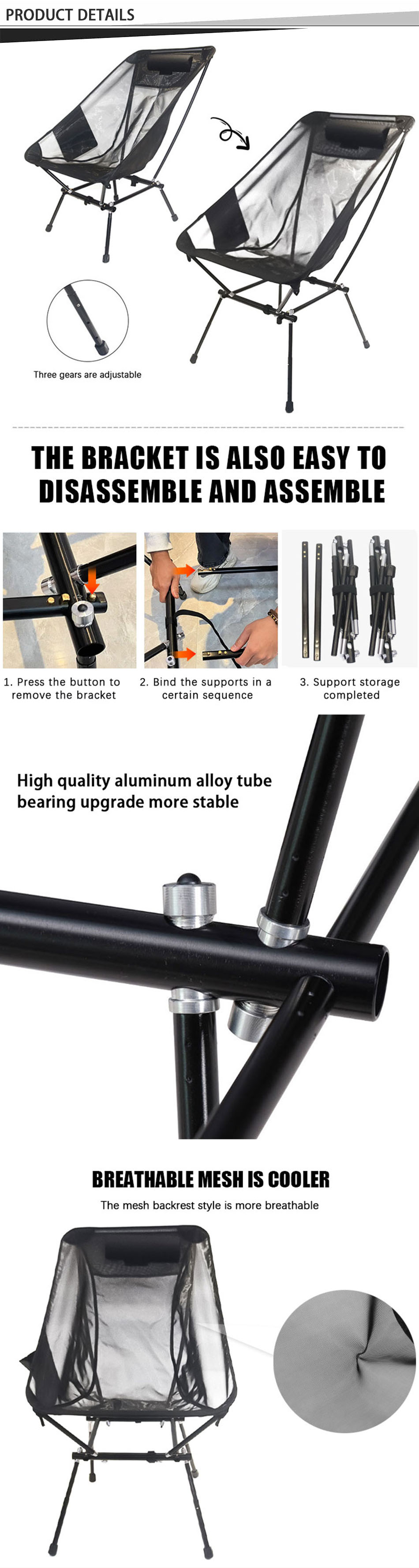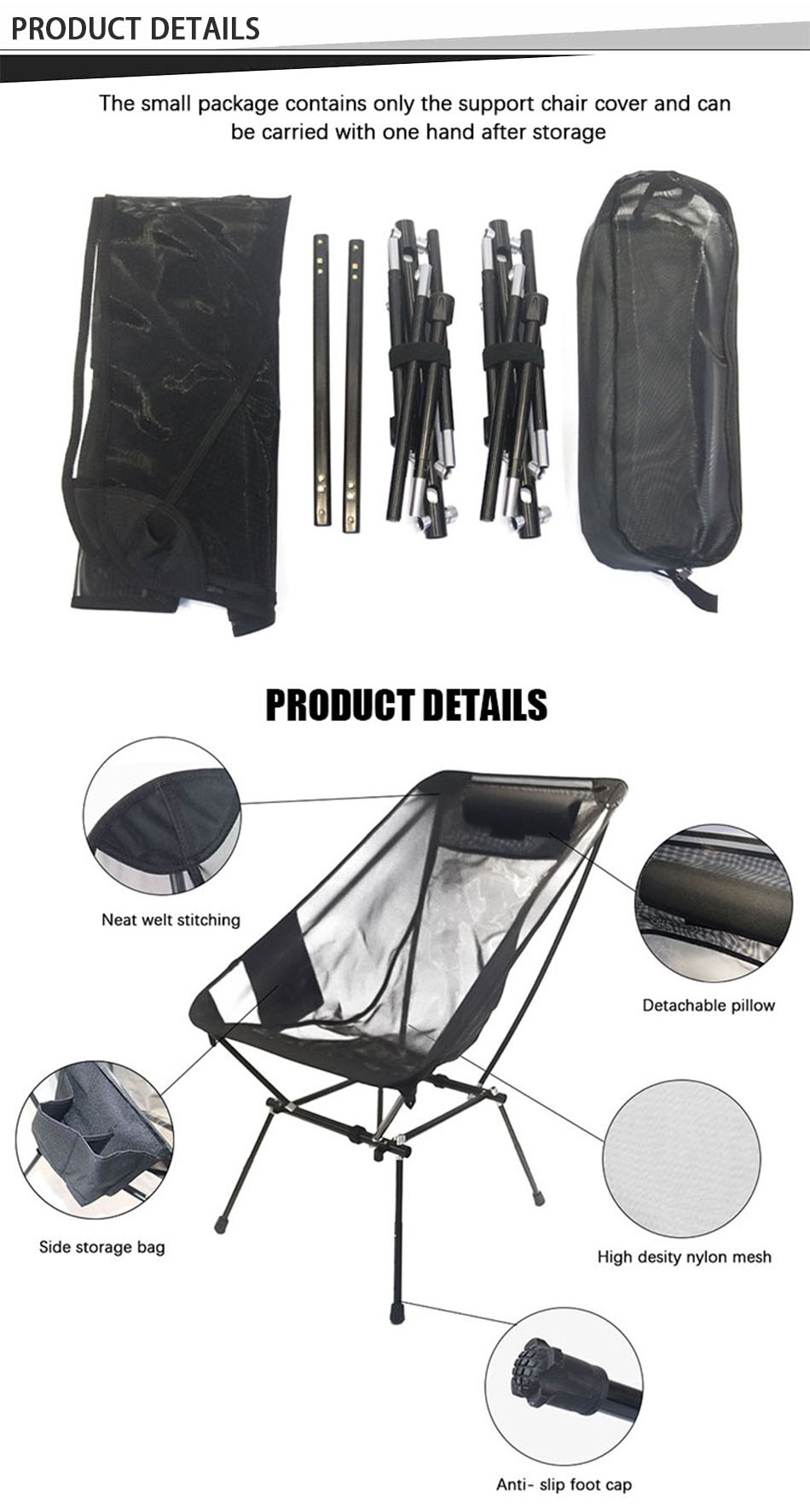 Merke : ANHUI FEISTEL FACTORY Relatert produksjon : OEM & ODM Produkt : Sammenleggbar aluminium utendørs strandcamping bærbar stol, komfortabel og bærbar, du kan nyte fritid og komfort mens du camper.