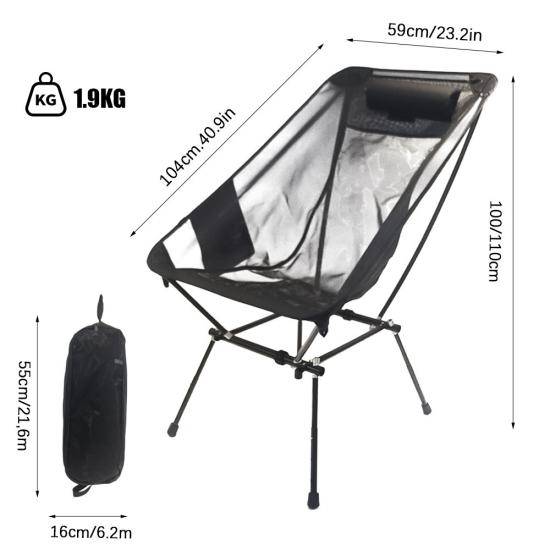 Lett sammenleggbar bærbar aluminiumsleirstol utendørs Moon Camping Chair