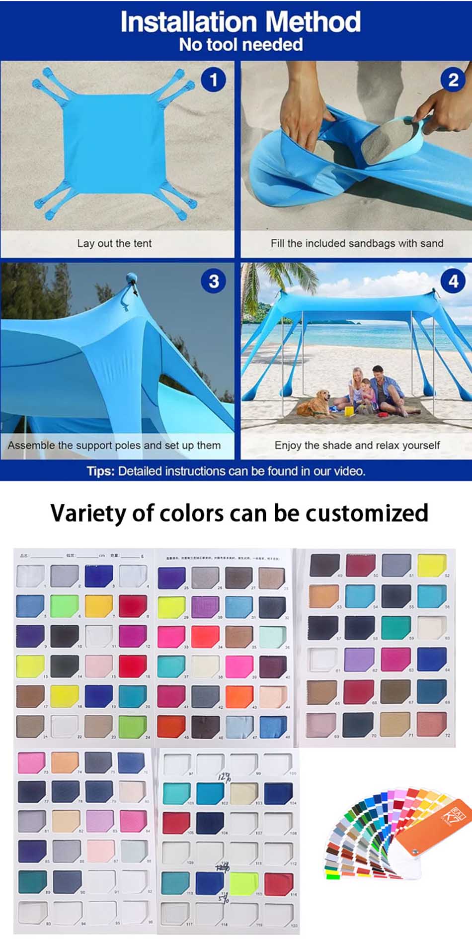 Pop Up Strandtelt Solskjerm Uv-matte Stort Uv-beskyttelsestelt tilpasset