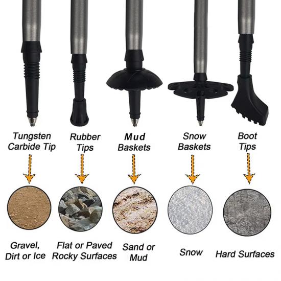 denne turstaven er laget av 7075 aluminiumslegeringsmateriale, som er korrosjonsbestandig og lettere enn andre materialer.