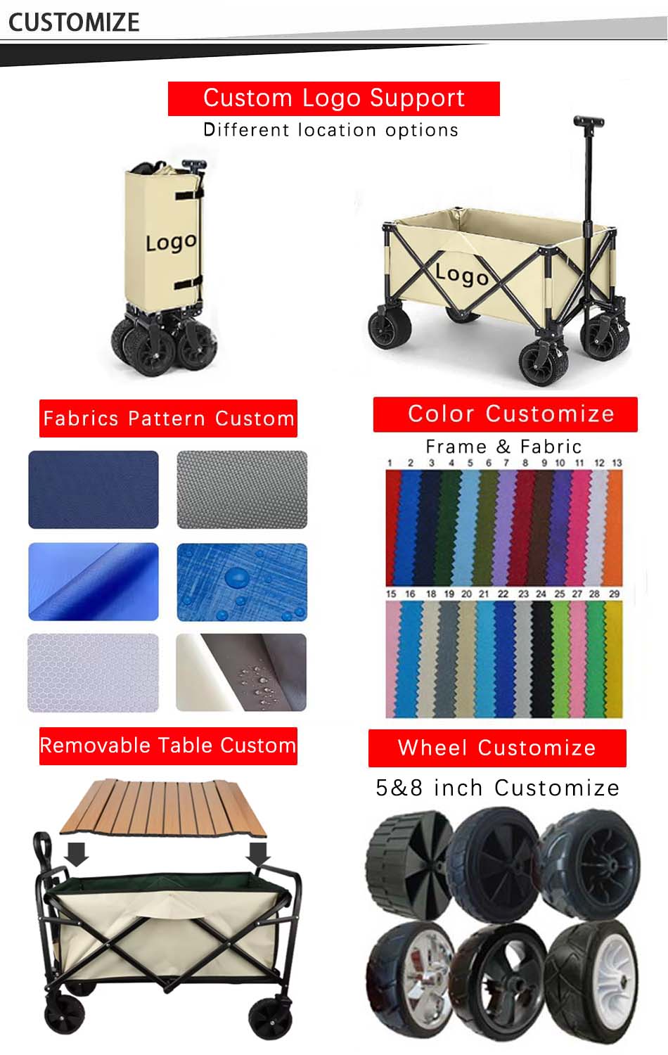Merke : ANHUI FEISTEL FACTORY Relatert produksjon : OEM & ODM Produkt : En robust, sammenleggbar vogn ideell for camping og piknik, med slitesterk konstruksjon, terrenghjul og enkel portabilitet for utendørseventyr.