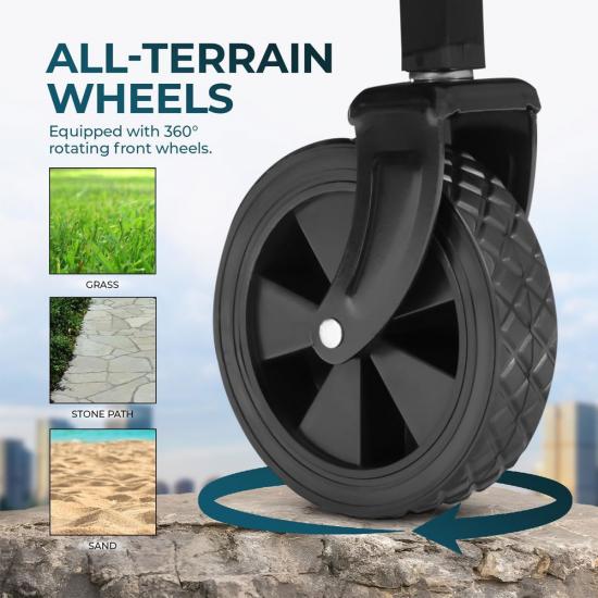 5 tommers terrenghjul sammenleggbar utendørs hage redskapsvogn med brems