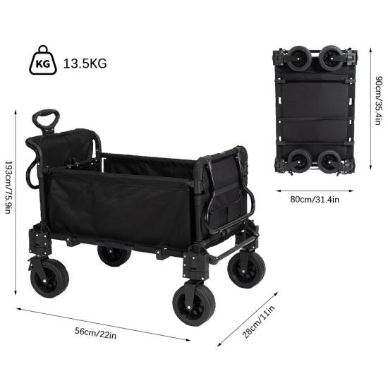 Merke : ANHUI FEISTEL FACTORY Relatert produksjon : OEM & ODM Produkt : Kraftig sammenleggbar utendørs campinghagevogn med universalhjul, justerbart håndtak og kompakt oppbevaring. Ideell for ulike terreng og enkel transport av tung last.