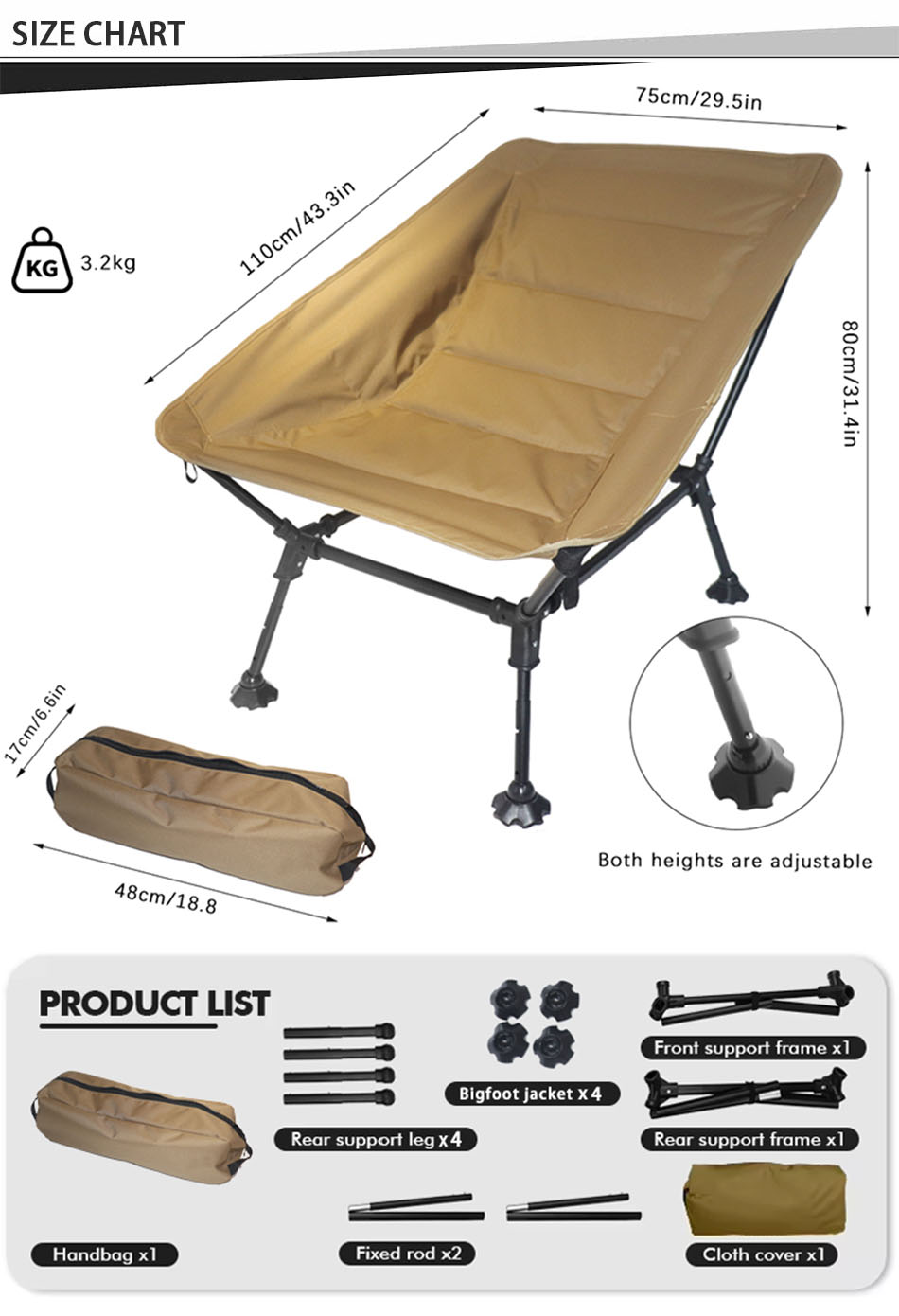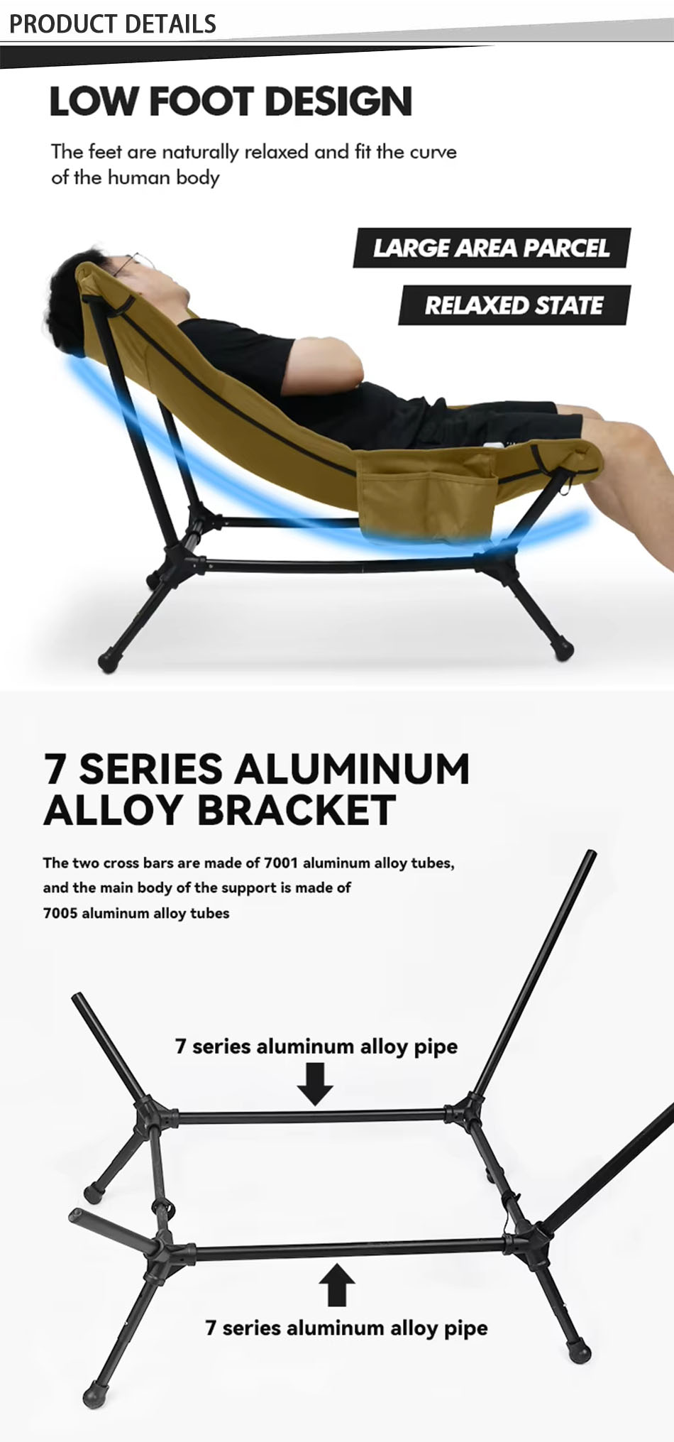 Merke : ANHUI FEISTEL FACTORY Relatert produksjon : OEM & ODM Produkt : Sammenleggbar aluminium utendørs strandcamping bærbar stol, komfortabel og bærbar, du kan nyte fritid og komfort mens du camper.