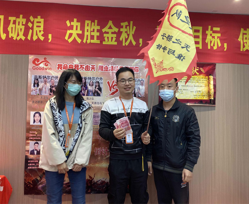 feistel outdoor products co., ltd. belønnet enkeltpersoner og lag med enestående prestasjoner i denne konkurransen. hvert lagmedlem ropte laget sitt’ s slagord, kunngjorde teamet’ s ytelsesbeløp og rangering, det første laget mottok en pengepremie fra feistel outdoor products co., ltd. og en utebord for hver person. etter å ha mottatt premiene, tok alle gladelig et gruppebilde sammen.