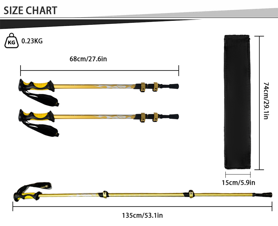 [kompakte og reisevennlige turstaver kan enkelt oppbevares i bagasje, ryggsekker og saccosekker. denne turstaven kommer også med en lett å lagre gummituppbeskytter, stangkobling og gjørmekurv. [ny og forbedret modell! løpsstaver kommer med polstrede stropper for maksimal komfort og ergonomisk grep. det er ingen grunn til å bekymre deg for at turstaven faller igjen.