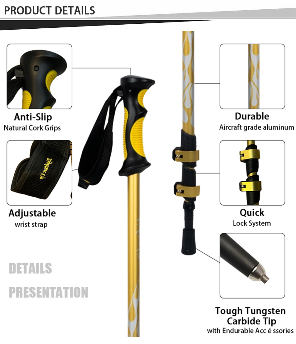 Merke: ANHUI FEISTEL FABRIKK Relatert produksjon: OEM & ODM Produkt: 6013 lettvekts teleskopisk trekkingstang i aluminium: hurtigjusterbare låser, holdbare, allsidige, ergonomiske, lette, ideell for fotturer, tilpassbar lengde, sterk.