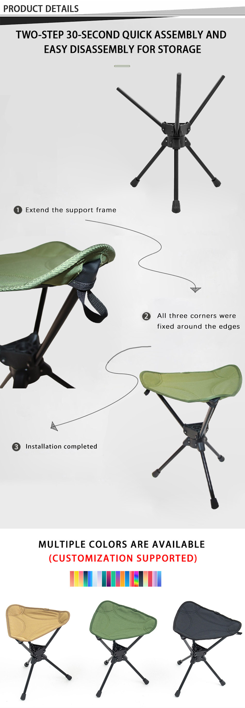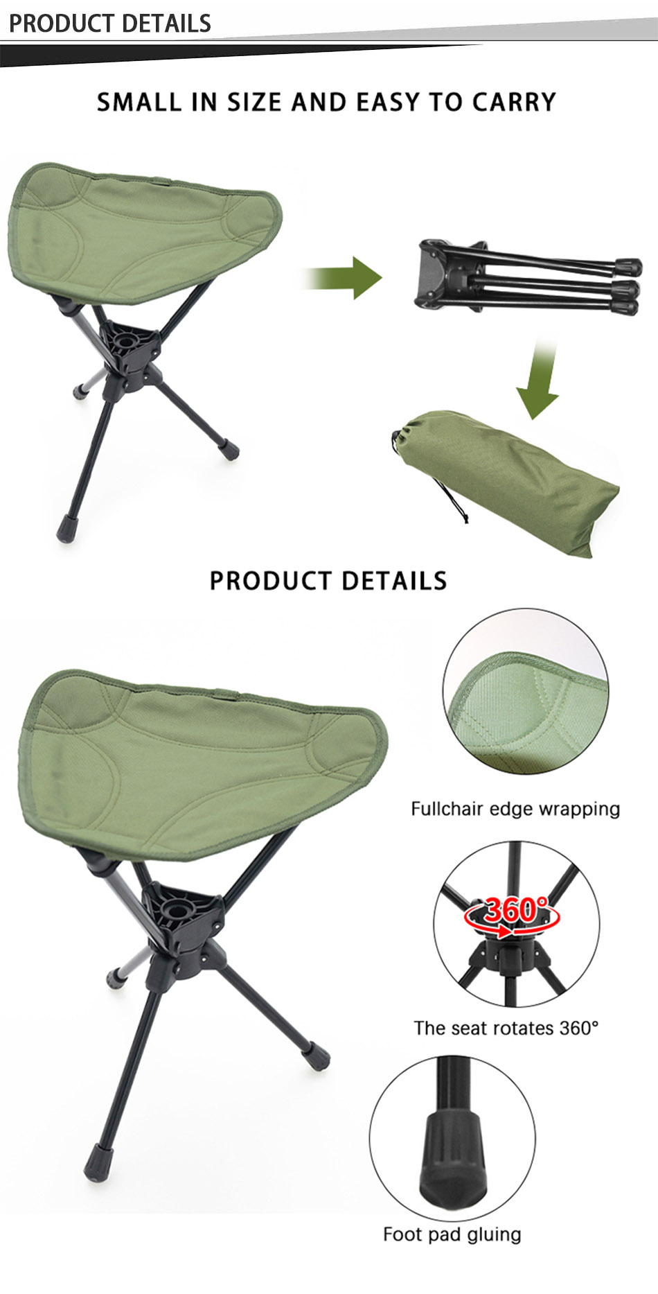 Produkt : Den lette krakken i aluminiumslegering med slitesterkt Oxford-stoff har en 360° svingbar design, noe som gir bærbar komfort og allsidighet for utendørs camping, fisking og reiser.