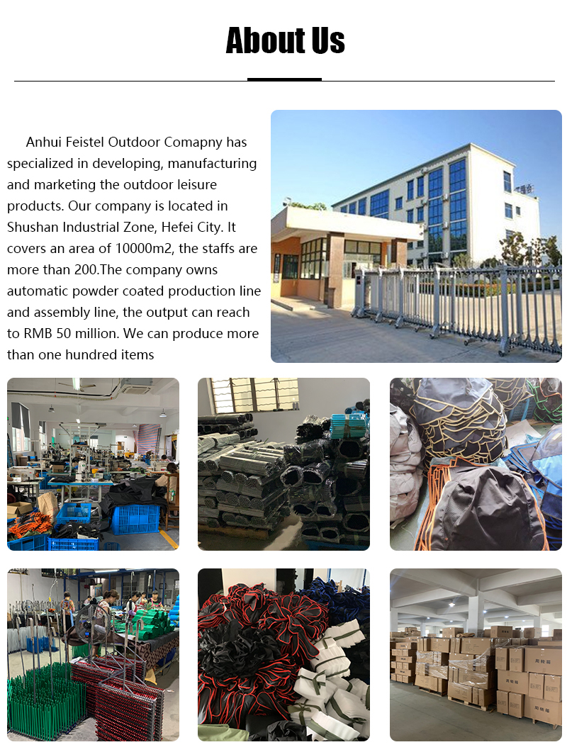Merke : ANHUI FEISTEL-FABRIKKEN Relatert produksjon : OEM og ODM Produkt : Den spesialtilpassede, lette, sammenleggbare månestolen i metall og jern tilbyr slitesterk støtte og komfort, ideell for utendørs camping, med et kompakt, bærbart design for enkel transport og oppbevaring.