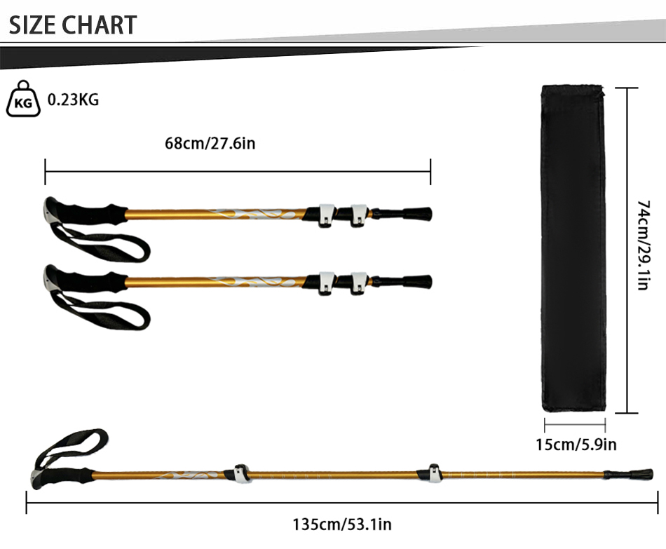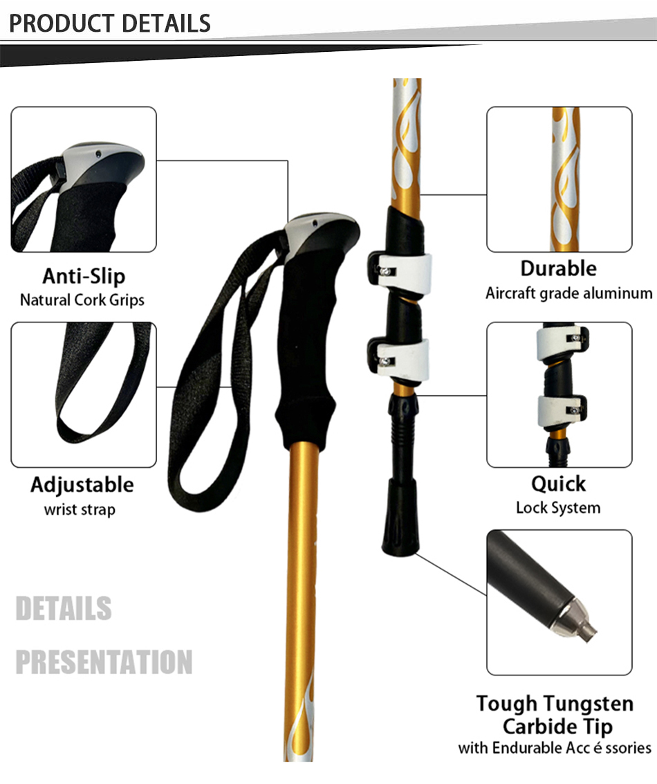 Merke: ANHUI FEISTEL FABRIKK Relatert produksjon: OEM & ODM Produkt: 6013 lettvekts teleskopisk trekkingstang i aluminium: hurtigjusterbare låser, holdbare, allsidige, ergonomiske, lette, ideell for fotturer, tilpassbar lengde, sterk.
