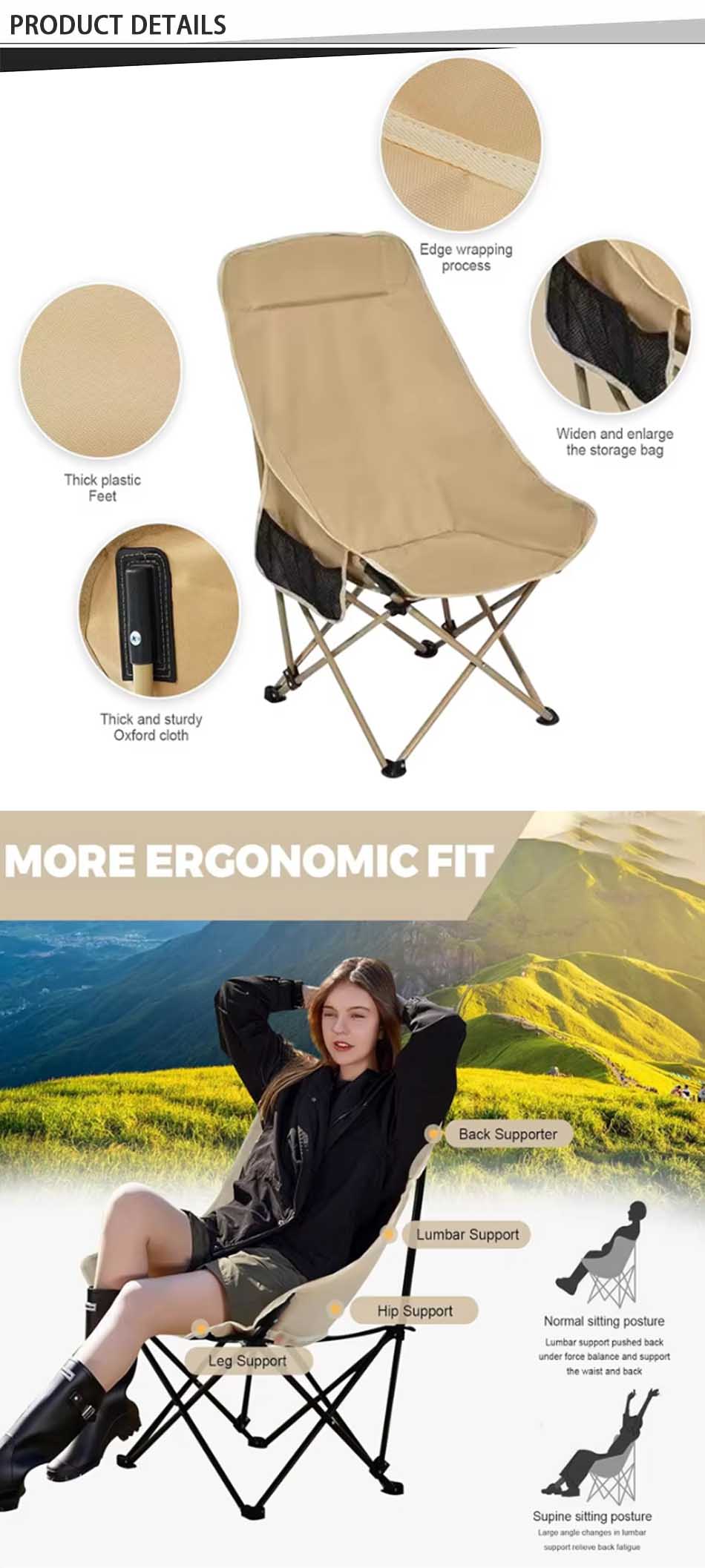 Lett sammenleggbar bærbar aluminiumsleirstol utendørs Moon Camping Chair