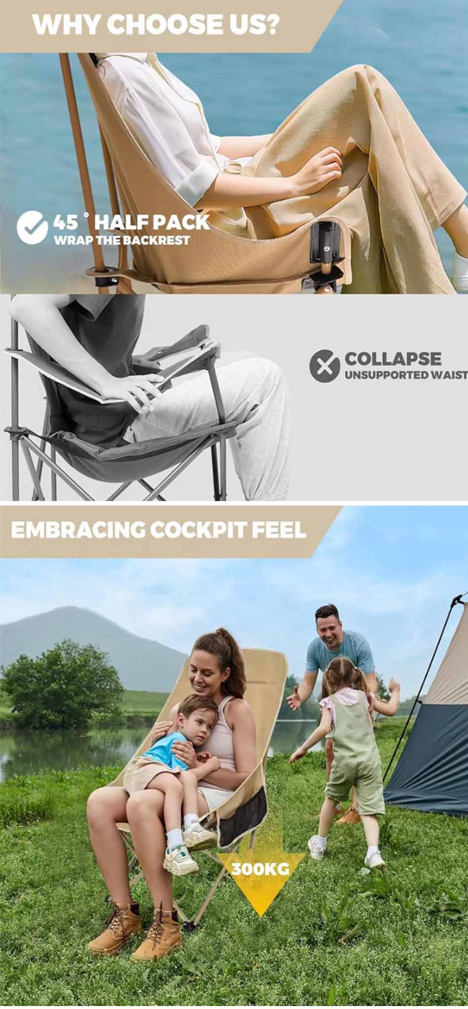 Merke : ANHUI FEISTEL FACTORY Relatert produksjon : OEM & ODM Produkt : Ultralett campingstol med høy rygg med bæreveske, perfekt for utendørseventyr, som gir komfort, holdbarhet og enkel portabilitet.