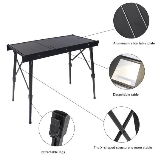 Sammenleggbart tilpasset utendørs Igt gratis kombinasjon Lett justerbart bærbart campingbord i aluminium