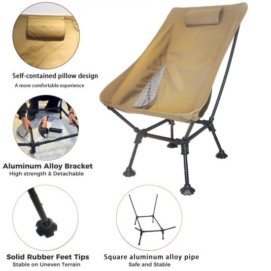 Merke : ANHUI FEISTEL FACTORY Relatert produksjon : OEM & ODM Produkt : Ultralett campingstol med høy rygg med bæreveske, perfekt for utendørseventyr, som gir komfort, holdbarhet og enkel portabilitet.