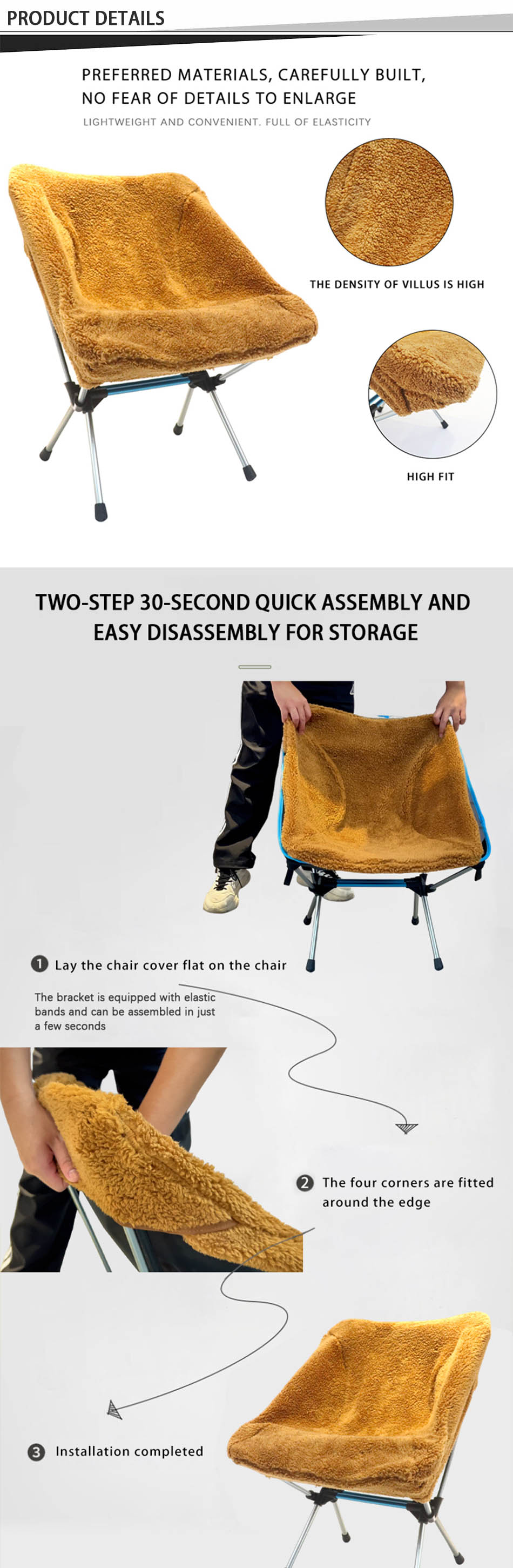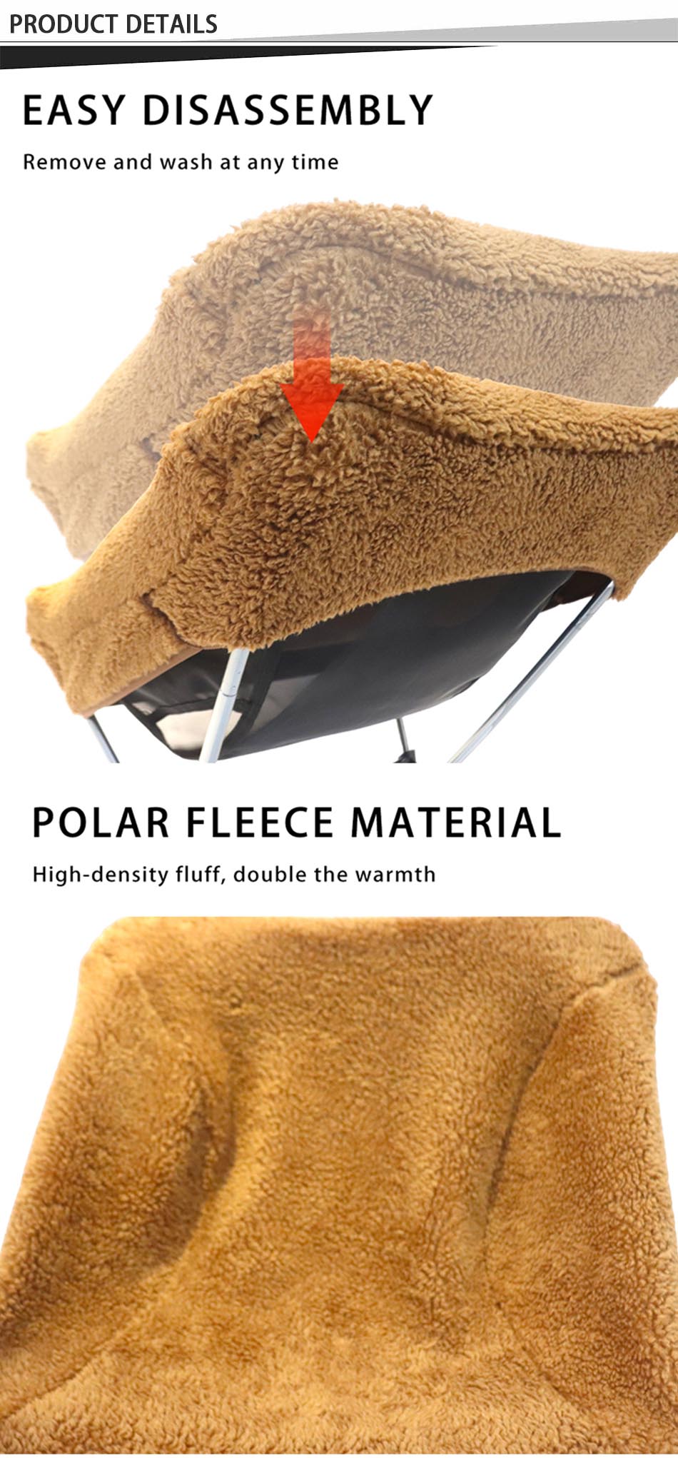 Produkt : Det vintervarme, tykkede ulltrekket tilbyr førsteklasses isolasjon og komfort, designet for fotturer, piknik og månestoler, og passer til klappstoler av høy kvalitet til utendørs camping.